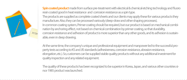 | Metallic Black | Single Coat | The product with black color by adding high anti-corrosion, heat resistance resin and pigments to the PTFE dispersion. | 25~30 | 0.6~3.5 | ~780 |