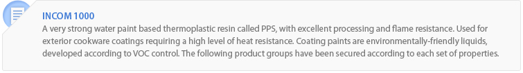 Model Type Feature Application Color Baking Temp. Continuous Use Temp. Corrosion Resistance Durability Nonstick